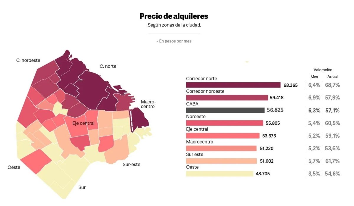 De esta forma, los alquileres alcanzan el valor de actualización interanual más alto de los últimos años, con 5.82 puntos porcentuales más que en el mes de octubre 2022, cuando el aumento anual llegó a 67,31%.